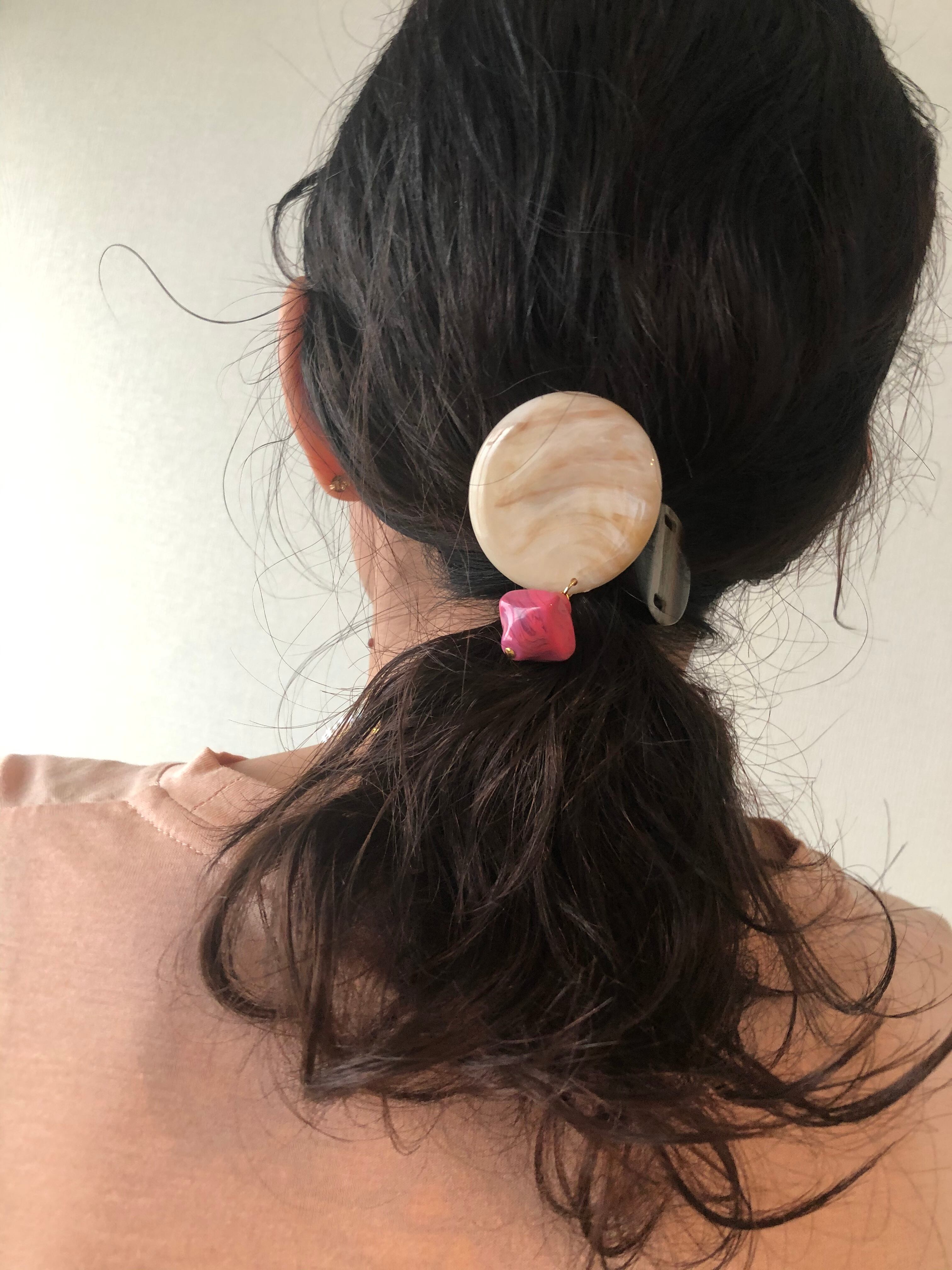 バレッタではなく、フックタイプなので、結んだゴムの部分に挿すだけです。