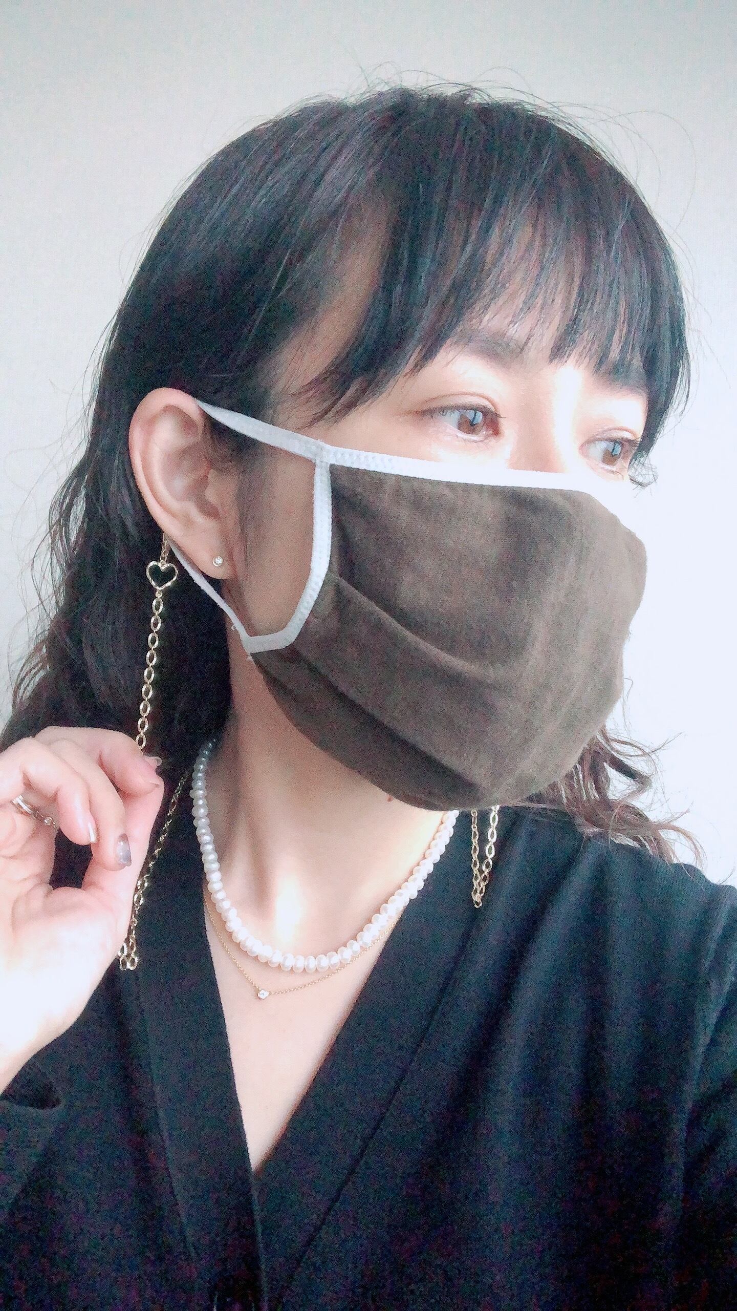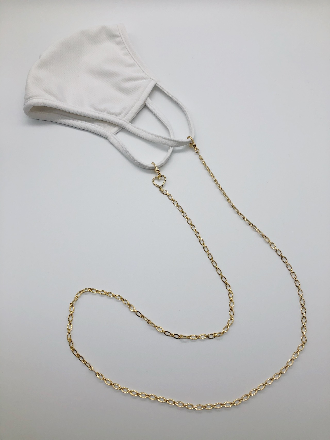 ※耳かけ部分が太めのマスクの場合、輪っかで留めますが紐が太いものだと留まりずらいです。チェーンなので、絡まることもご理解ください。